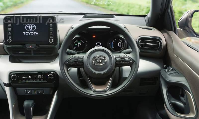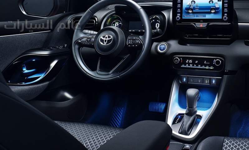 يتبع التصميم الداخلي مبدأ التقليل من الشيء يضفي إحساسًا بالروعة، مما يوفر مساحة مفتوحة وواسعة للسائق والراكب الأمامي، مع مواد عالية الجودة تزخرف الأبواب من الداخل، ولأول مرة في سيارة ياريس، توفير لوحة أدوات تعمل باللمس مما يضفي روح العصرية التقنية داخل المقصورة.