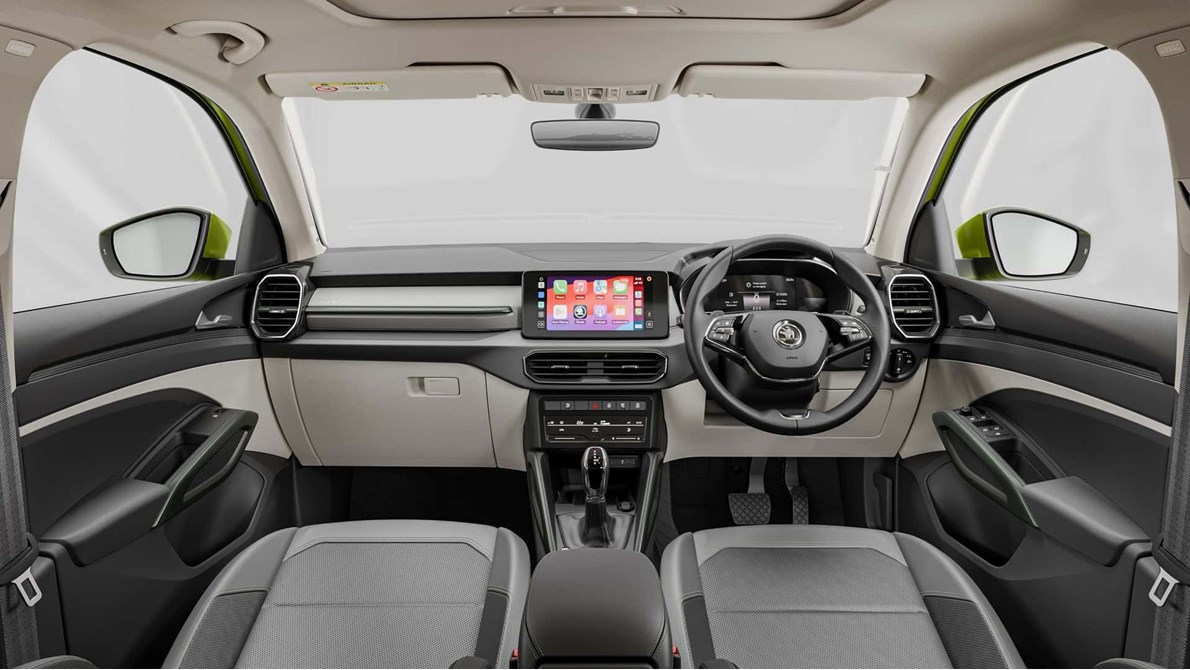 على الرغم من الحجم الصغير، تقول "سكودا" أن "كايلاك" توفر مساحة داخلية واسعة مع سعة شنطة تبلغ 446 لترًا، أما بخصوص المقصورة الداخلية تتميز لوحة القيادة بشاشة للترفيه وعرض المعلومات تعمل باللمس مقاس 10.1 بوصة، وشاشة عدادات رقمية مقاس 8 بوصة، بالإضافة إلى دعم الاتصال بتطبيقات Android Auto وApple CarPlay، وشحن لاسلكي للهواتف الذكية.