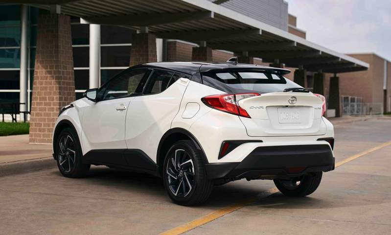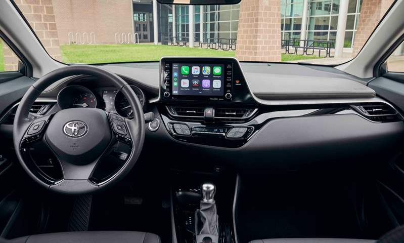 وتطل السيارة بملامح حادة تعززها خطوط المقدمة والمصد الأمامي والشبكة الواسعة والجناح الخلفي، وتلتف المصابيح الأمامية النحيفة بتقنية LED في جانبي غطاء المحرك، ويأتي الإصدار LE مع مصابيح أمامية LED كتجهيز قياسي، مع عجلات مقاس 17 بوصة واختيار عجلات معدنية مقاس 18 بوصة. وتأتي جميع طرازات C-HR بشكل قياسي مع توافق أبل كاربلاي وأندرويد أوتو.