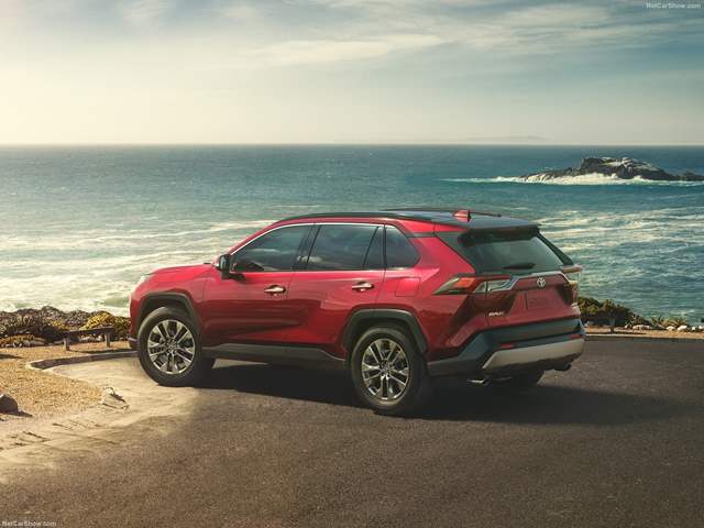 ومما يجذب الانتباه في مظهر RAV4 الخارجي كون السقف بلون مغاير للون الجسم، مما يصنع تناغمًا لونيًا جذابًا، وهو يمتد نحو المؤخرة لينتهي بسبويلر صغير أعلى الزجاج الخلفي المعاد تصميمه ليمنح رؤية أفضل، وكما تتوزع الخطوط الحادة على الجسم فإننا نراها أيضًا في المؤخرة حتى على تصميم المصابيح..
