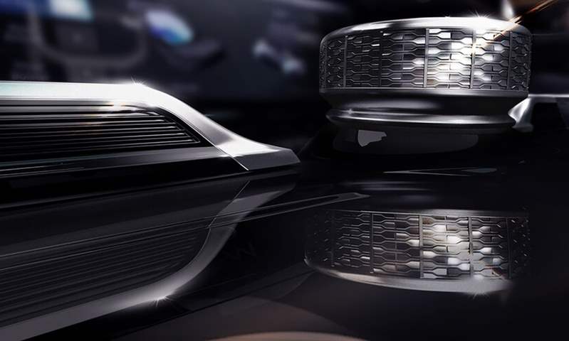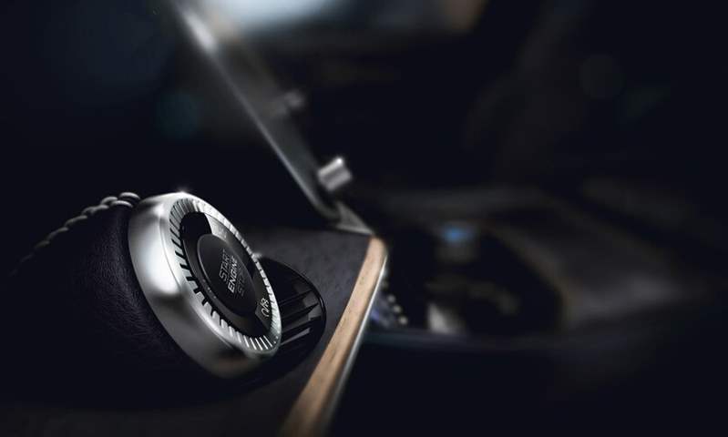 أما الصورة التي تُظهر زر بدء تشغيل المحرك على لوحة القيادة، فيبدو فيها بجوار الزر رف مع بعض الزخارف الخشبية ذات المظهر المميز، مع مقبض فضي للتحكم في مستوى الصوت لنظام المعلومات والترفيه، كما يظهر ما يبدو أنه مقبض فضي مزخرف قد يكون مسؤولاً عن التحكم في ناقل الحركة أو وضع التضاريس.