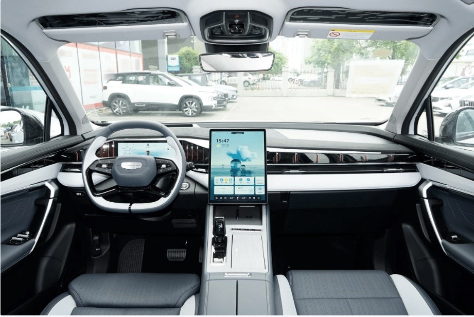 وتتميز عجلة القيادة بتصميم على شكل حرف D ذو أربعة أذرع، وشاشة عدادات LCD كاملة مقاس 10.25 بوصة، وشاشة للترفيه وعرض البيانات رأسية مقاس 13.2 بوصة تدمج نظام جالاكسي Galaxy OS 2.0 ، وشريحة سناب دراجون كوالكوم Qualcomm Snapdragon 8155.