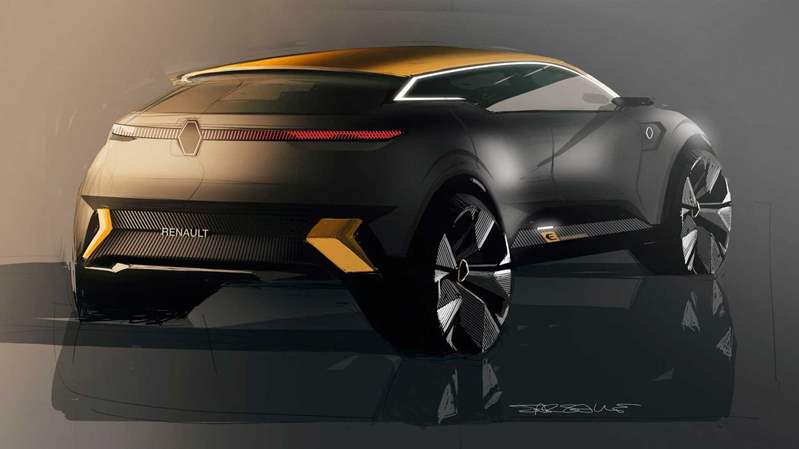 تأتي السيارة الاختبارية على طراز هاتشباك ذات خمسة أبواب، وتنوي رينو تقديم نسخة إنتاج منها في العام القادم 2021. ولأنها سيارة كهربائية فهي لا تحتاج إلى شبكة التهوية الأمامية، لذلك استغلت رينو هذه المساحة للتأكيد على الإضاءة المميزة، فالمصابيح الأمامية تأتي بتصميم خطوط حادة، ويمتد بينها خط أفقي من الإضاءة المتعرجة، بينما تضيف الأجزاء الذهبية على جانبي المقدمة لمسة من الأناقة إلى مظهر السيارة.