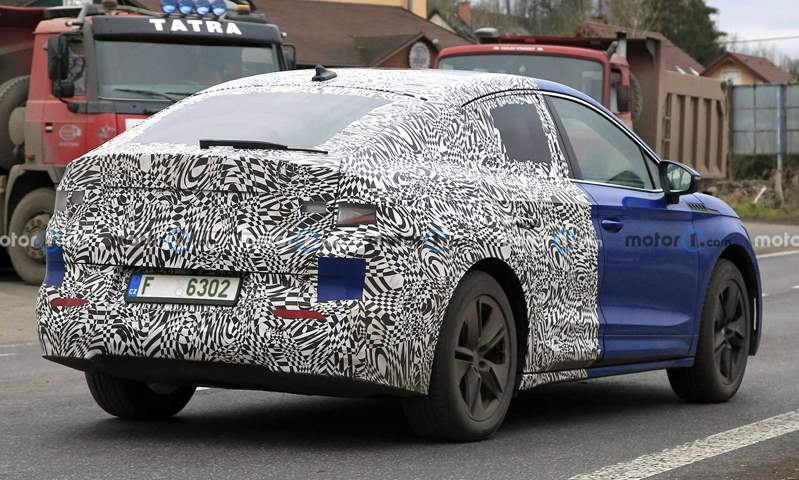 ورغم أن التمويه أقل من ذي قبل، فإن التمويه المتبقي ما زال يخفي المنطقة التي تحدث فيها جميع التغييرات على الطراز التقليدي، لكن الواضح أن الإصدار الكوبيه سيتجنب بعض ملامح سكودا التصميمية المميزة من أجل مزيد من التميز والأناقة.