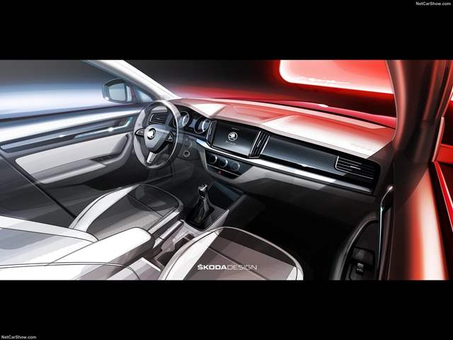 في الداخل تستمر اللمسات القوية في فرض سيطرتها على التفاصيل، حيث لوحة القيادة ذات الخطوط الأفقية الموحية بالاتساع وتستقر في منتصفها شاشة لمسية ملونة مقاس 8 بوصة يمكن للسائق من خلالها تشغيل العديد من وظائف السيارة بسهولة، وهي قابلة لتوصيل الهواتف الذكية ومزودة بنظام اتصال ذكي مطور من سكودا هو نظام التحكم الصوتي iFLYTEK الذي يتلقى الأوامر الصوتية، وهناك أيضًا عجلة القيادة ثلاثية الأذرع التي تضم مجموعة صغيرة من الأزرار التي تتيح التحكم في وظائف الترفيه، بينما يقدم المقعدان الأماميان دعمًا جانبيًا لمزيد من راحة الجالسين عليهما..