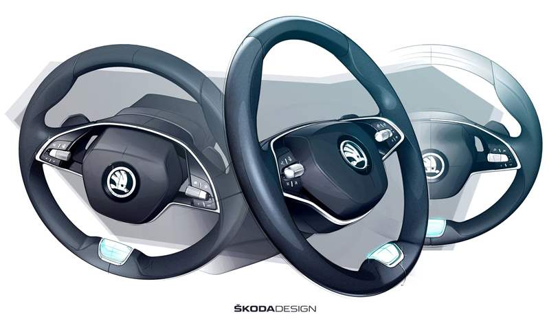 عجلة القيادة الجديدة ستتضمن أزرار وعجلات تمرير سهلة الاستخدام وفقاً لسكودا، ويمكن أيضاً رؤية مفتاح صغير هو بمثابة عصا صغيرة لنقل السرعات بتقنية shift-by-wire التي تحل محل عصا نقل السرعات التقليدية لصندوق السرعات الـ DSG مزدوج القابض، وهناك أيضاً تطوير على صعيد نظام التحكم في المناخ الذي سيكون من 3 مناطق لدرجة الحرارة.