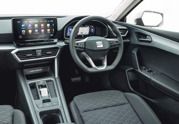 في الداخل لا يقتصر الأمر عل مساحة زائدة للأرجل لراحة الركاب، بل إن تصميم المقصورة قد تم على نحو مريح، مع تقليل عدد الأزرار إلى الحد الأدنى والتركيز على شاشة المعلومات والترفيه التي تأتي بمقاس 10 بوصات وتتضمن التعرف على الإيماءات، ما يعني استجابتها للسائق والركاب كذلك. كذلك فقد أولت سيات الكثير من الاهتمام لتحقيق التوازن المثالي بين الخامات المتنوعة من البلاستيك والمنسوجات والجلود لتغطية المقاعد وألواح الأبواب ولوحة القيادة.