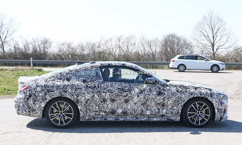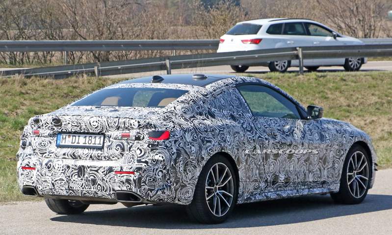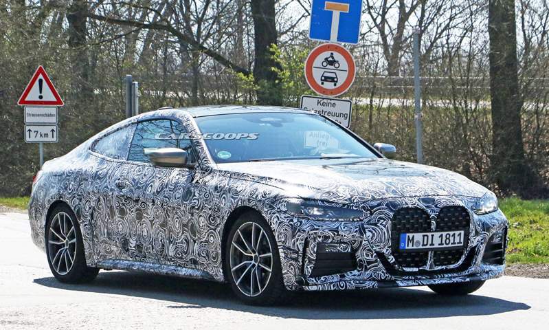 التقطت عدسات المصورين بعض الصور التجسسية لسيارة بي إم دبليو الفئة الرابعة بتمويه سميك، لكن التمويه لم يخفِ تمامًا الشبكة الأمامية الضخمة التي يعشقها جمهور بي إم دبليو.
