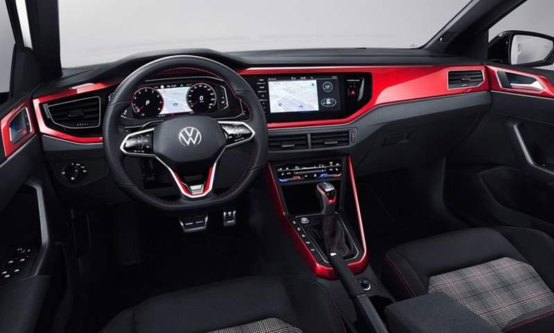في الداخل، الأسود والأحمر والرمادي والكروم هي الألوان السائدة. يتم الاحتفاظ دائمًا بأعمدة السقف وبطانة السقف بلون التيتانيوم الأسود، وهو نموذجي لسيارة GTI. كما أن خياطة التباين باللون الأحمر هي أيضًا سمة نموذجية لسيارة GTI. إنها تزين عجلة القيادة الرياضية الجلدية متعددة الوظائف، والتي تأتي بشكل قياسي، مع تقليم ذراع التروس وأسطح المقعد. يوفر نظام الصوت الاختياري بقدرة 300 واط وستة مكبرات صوت تجربة صوتية مميزة. يوجد مكبر الصوت أسفل الأرضية في منطقة الشحن المتغيرة لتوفير المساحة. تبلغ سعة صندوق الأمتعة في سيارة فولكس فاجن بولو جي تي آي الجديدة 351 لترًا.