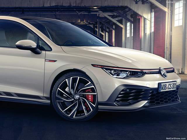 تمكن معرفة السيارة جولف من النظرة الأولى بفضل واجهتها، فشبكتها الأمامية الحقيقية تستقر أسفل المصد بفتحات واسعة على شكل قرص العسل، وأسفلها سبليتر مصنوع من ألياف الكربون يقلل من مقاومة الهواء ويزيد من ثبات المقدمة على الطريق، أما أعلى المصد فتوجد شبكة ضيقة للغاية تستقر عليها حروف GTI، ويمتد فوق المصابيح الأمامية الـLED خط باللون الأحمر.