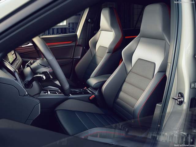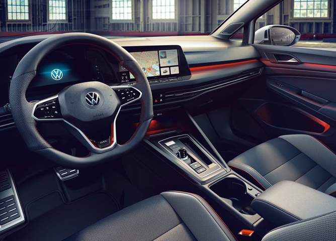 في الداخل تُظهر الخيوط الحمراء على المقاعد ومسند الذاع وحصائر الأرضية وعجلة القيادة أن المقصورة تنتمي إلى جولف GTI. وتأتي عجلة القيادة مكسوة بالجلد المثقوب على جانبيها، كما تأتي المقاعد الرياضية بمساند رأس مدمجة، وهي مطاة بالجلد المثقب مع خياطة زخرفية حمراء متوافرة اختياريًا.