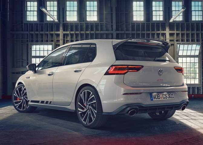 أما في الخلف فنلاحظ وجود جناح أعلى الزجاج باللون الأسود شديد اللمعان، وهو يزيد من ثبات المؤخرة عند الانطلاق على الطريق، بينما تأتي أنابيب العادم بيضاوية بدلاً من الأنانبيب الدائرية في سيارة جولف GTI العادية، أما المصابيح الخلفية فهي تأتي أيضًا LED.