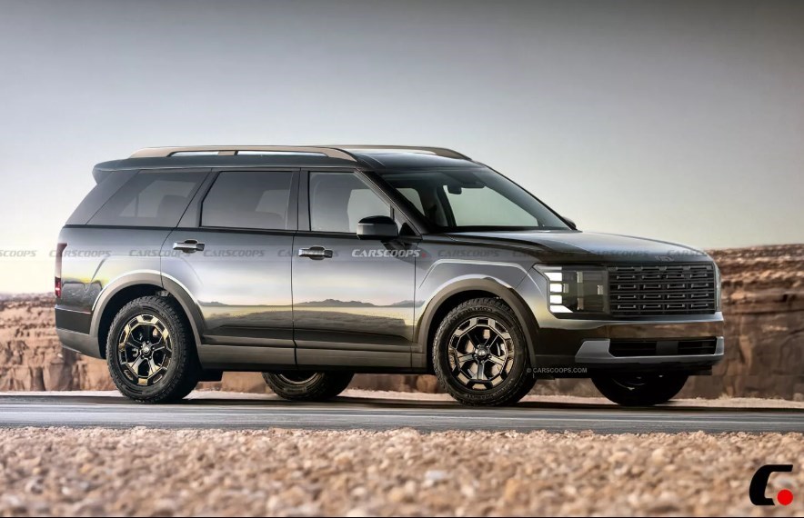 وعلى عكس "سانتا في" فإن هيكل "باليسيد" الجديدة أكثر إنسيابية بفضل بعض الخطوط المنحنية في الأجزاء السفلية والدعامتين C وD، كما أن الجوانب تتبنى مظهرا مشابها للسيارة "رينج روفر" مع سقف عائم ثنائي اللون ذو عوارض سقف سوداء ومن المتوقع أن تتوفر بعض التعديلات مع لمسات من الكروم (بشكل اختياري)، أما بخصوص الجزء الخلفي فهو يتميز بباب شنطة عريض وجناح رياضي كبير ونظام عادم بفتحات مخفية.