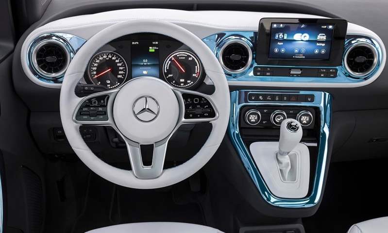 تعتبر المقصورة المكسوة بالجلد والمزودة بنظام المعلومات والترفيه MBUX كبيرة بما يكفي لاستيعاب لوح طويل كهربائي في مقصورة الشحن. وإذا كنت بحاجة إلى مساحة أكبر، فيمكن طي الصف الثالث من المقاعد أو إزالته بالكامل.