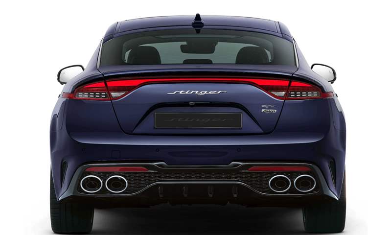 وبإمكان من يشترون الطرازات الأكثر قوة من ستينجر الحصول على مخارج العادم الفضية الأكبر حجماً بالتجويف الأعرض، مع مشتت هواء خلفي ذي مظهر أكثر جرأة مستلهم من أدائها الفائق، ليمنح السيارة مظهراً خلفياً أكثر قوةً.