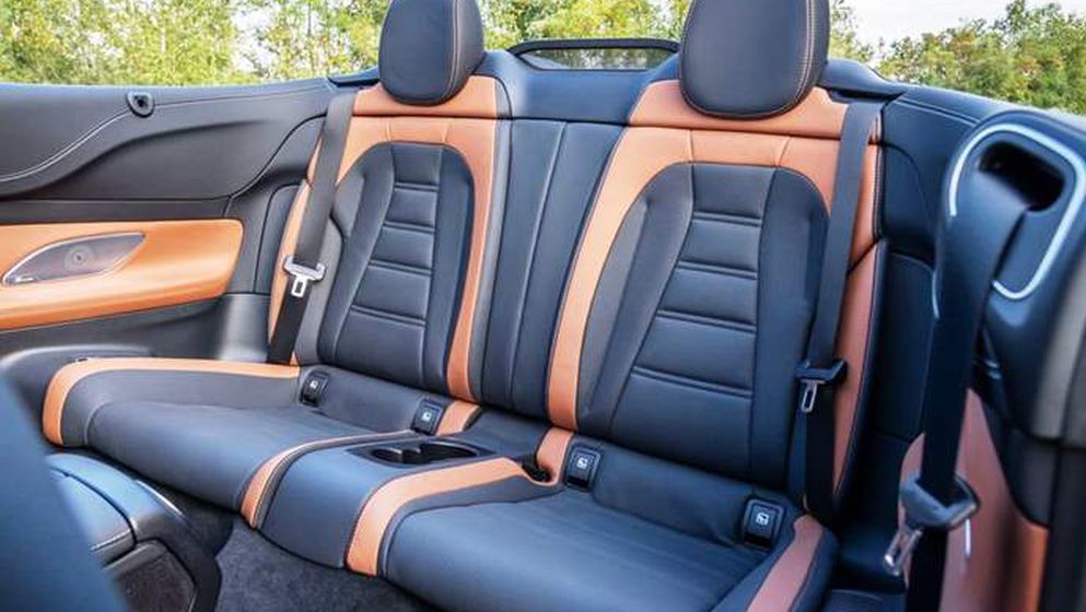 في الداخل يجمع التصميم بين الأناقة والمواد عالية الجودة، فالمقاعد تجمع بين الدعم الجانبي الآمن والراحة الاستثنائية، وهي تتميز بتنجيد خاص مع شارة AMG في مساند ظهر المقاعد الأمامية، مع التنجيد بجلد ARTICO المصنوع يديوًا وألياف DINAMICA باللون الأسود مع خيوط باللون الأحمر. ويمكن طلب مقاعد AMG Performance المزودة بمساند رأس مدمجة ودعم جانبي أفضل.