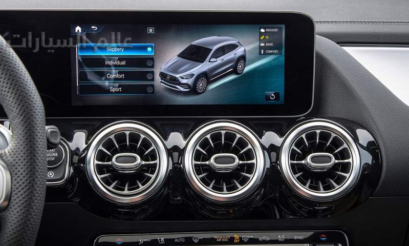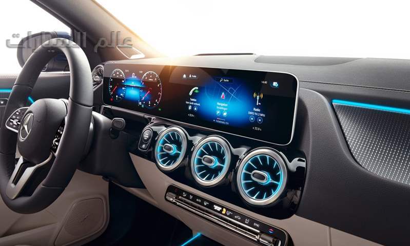 تأتي مقصورة GLA الجديدة مع 3 خيارات لشاشات العرض، الأول شاشتين من قياس 7 بوصة، الثاني يتكون من شاشة من قياس 7 بوصة والثانية من قياس 10.25 بوصة والخيار الأخير يتكون من شاشتين من القياس الأكبر.