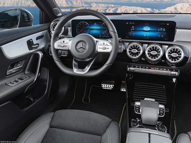 في الداخل تبدو المقصورة أنيقة ومميزة، فلوحة القيادة ممتدة بخطوط انسيابية وتستقر في منتصفها ثلاث فتحات دائرية لهواء المكيف مستوحاة من المحركات التوربينية للطائرات، بينما تتجاور شاشتا عرض ملونتان إحداهما على اليمين تتيح التحكم في وظائف الترفيه وتعرض بيانات السيارة، أما تلك الواقعة على اليسار فهي لعدادات السيارة، وتتوفر الشاشتان في ثلاثة إصدارات أولهما أن تكون الاثنتان مقاس 7 بوصة، أو أن تكون إحداهما مقاس 7 بوصة والأخرى 10.25 بوصة، أو أن تكون الاثنتان بمقاس 10.25 بوصة..