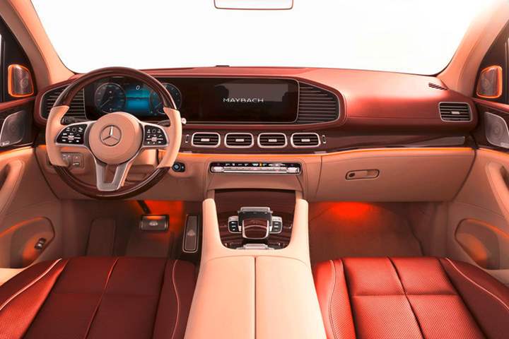 في الداخل تنطق المقصورة بملامح الفخامة، وتستقر على لوحة القيادة شاشة لمسية مقاس 12.3 بوصة تتصل بنظام المعلومات والترفيه، مع نظام صوت محيطي Burmester، وتحتوي المقصورة على أربعة مقاعد بينها مقعدان خلفيان فرديان ومسند ذراع مركزي وطاولات قابلة للطي.