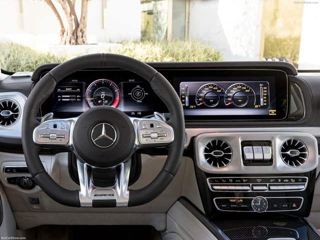 مُنحت السيارة G63 تصميمًا داخليًا حديثًا وللوهلة الأولى ستبدو فتحات المكيف الدائرية والعدادات كأنها انعكاس للمصباحين الأماميين الدائريين، بينما تجذب عجلة القيادة الأنظار بأناقتها حيث تأتي ثلاثية الأذرع ومسطحة القاعدة بتصميم حرف D، ويبدو شعار AMG واضحًا على ذراعها السفلية، وتستقر على لوحة القيادة المعاد تصميمها بالكامل شاشتان مقاس 12.3 بوصة في مجال رؤية السائق يغطيهما غطاء زجاجي مشترك..