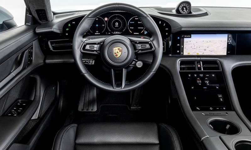 تتميز مقصورة تايكان بخطوط أفقية ذات انسيابية واضحة تمنح إيحاءً بالاتساع، وتشكل لوحة العدادات المنحنية تركيزًا واضحًا على السائق. وتستقر في قلب لوحة القيادة شاشة مركزية لنظام المعلومات والترفيه مقاس 10.9 بوصة، وتتوافر شاشة اختيارية للراكب الأمامي. كذلك تتوافر مقاعد أمامية مريحة مع تعديل كهربائي بثمانية اتجاهات.