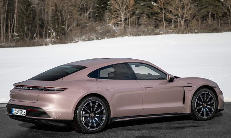 تتميز تايكان بالدفع بالعجلات الخلفية، وهي متوافرة بحجمين من البطاريات، وتأتي بقوة 408 أحصنة في وضع overboost، وتتسارع السيارة من وضع الوقوف إلى سرعة 100 كم/ س في 5.4 ثانية، وتبلغ سرعتها القصوى 230 كم/ س. ويمكن شحن البطاريتين من 5 إلى 80 في المائة في 22.5 دقيقة.