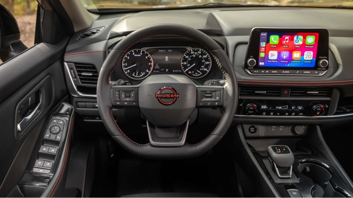 تستمر اللمسات الحمراء في الظهور ليس فقط في الخارج بل نجدها أيضا داخل المقصورة حيث تمنح لوحة القيادة وعجلة القيادة والأبواب الداخلية والفرش الداخلي المغطى بالجلد المقاوم للماء، طابعا عصريا، وتتضمن التحديثات بالإصدار الجديد من "روج" خاصية التدفئة للمقاعد الأمامية والمتوفرة بشكل قياسي، ومنفذ شحن بقوة 12 فولت، ومرآة للرؤية الخلفية ذات التعتيم التلقائي.