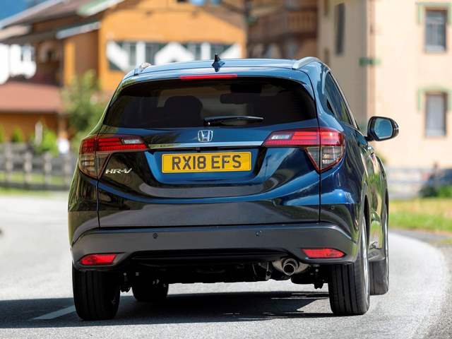 وفي المؤخرة يعكس الكروم الداكن عبر الباب الخلفي التقليم الجديد في الأمام، وتوجد المصابيح الخلفية داخل أغلة العدسات الداكنة، وتأتي ماسورة العادم بتشطيب من الكروم وقد حصلت السيارة على عجلات من سبيكة مقاس 17 بوصة.. ويمكن ترقية المصابيح الأمامية والخلفية إلى وحدات LED كاملة، مع تحسين الأغطية الخلفية بتأثير مدخن داكن، وتقدم هوندا ثمانية ألوان خارجية للسيارة HR-V..