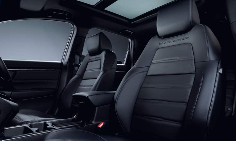 كشفت شركة هوندا عن نسخة جديدة سوداء ضمن مجموعة سيارات هوندا CR-V التي تنافس ضمن فئة سيارات SUV اليوم رسميًا، وتتميز السيارة الجديدة بشكلها المتميز بعجلات الألومنيوم المطلية باللون الأسود مقاس 18 بوصة والمصابيح الأمامية الداكنة قليلًا وزخرفة خارجية بالكروم الداكن، وبعض الزخرفة الخفيفة حول مصابيح الضباب وزينة سفلية في الأبواب الجانبية والباب الخلفي، بالإضافة إلى شعار الإصدار الأسود وفتحة سقف سوداء.
