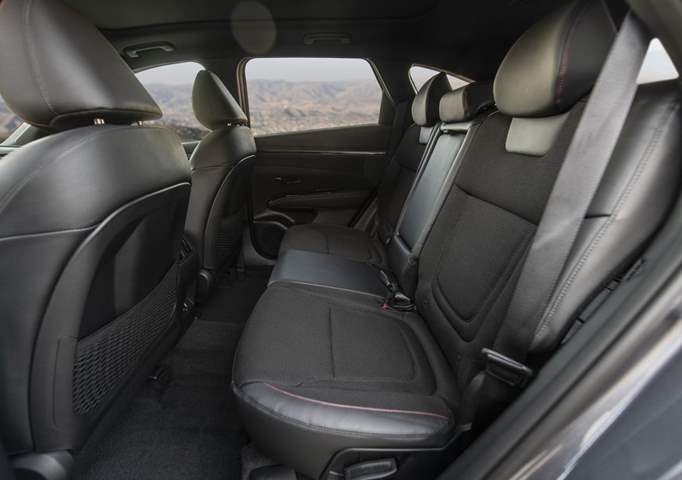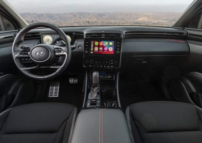 تأتي مقصورة توسان بالعديد ن المميزات، من بينها شعارات N Line على عجلة القيادة وناقل الحركة والمقاعد، وأسطح جلوس من الجلد والقماش، ولمسات حمراء على المقاعد وحواف الأبواب، وبطانة سقف سوداء، ودواسات معدنية وألواح عتبة الباب، بالإضافة إلى نظام Bose الصوتي الفاخر.