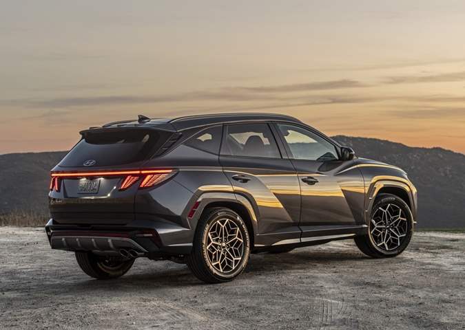 كجزء من العلامة التجارية N الشهيرة لشركة هيونداي، طورت الصانعة الكورية نسخة N Line من توسان لجذب العملاء المتحمسين، مع مظهر داخلي وخارجي يتسم بالشراسة والعدوانية، مع الجمع بين عناصر التصميم الديناميكي والتفاصيل المستوحاة من سباق السيارات.