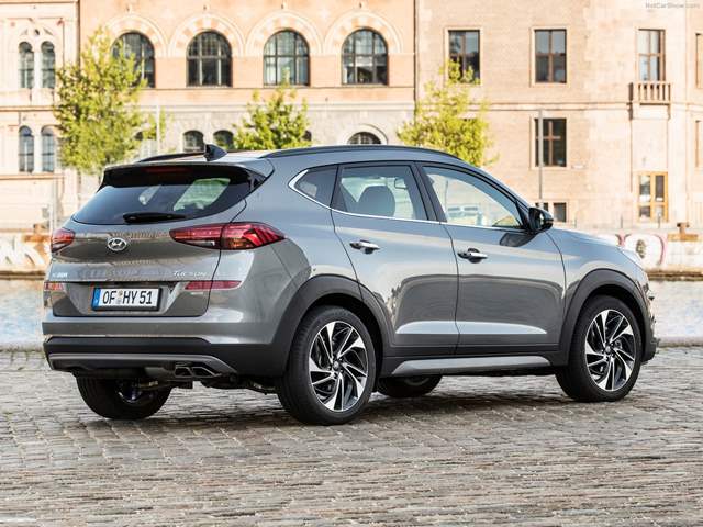 يمكن ملاحظة اللمسات الجديدة على مقدمة السيارة، حيث تتميز الآن بشبكة واسعة تقطعها أربعة خطوط أفقية لامعة تحيطها عينان جديدتان تعملان بتقنية LED مع مصابيح نهارية تعزز الطابع الرياضي لتوسان، بينما أعيد تصميم المصد الأمامي ليمنح السيارة مظهرًا ديناميكيًا، أما في الخلف فتبدو واضحة الخطوط الحادة في الباب الخلفي الجديد وتصميم المصد الخلفي المحدث، وتتوفر عجلات بمقاسات 16 و17 و18 و19 بوصة..