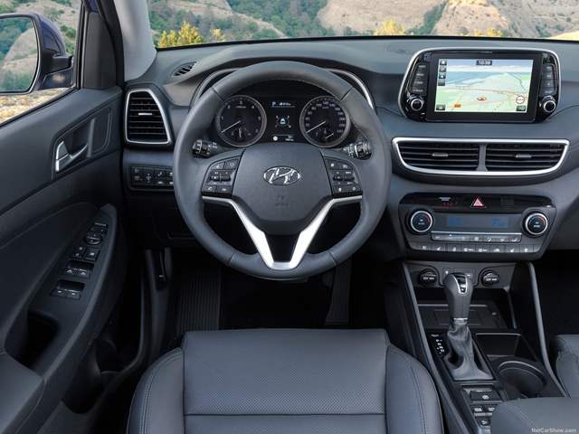 أما في الداخل فلم تخلُ المقصورة من لمسات التجديد، حيث نرى لوحة قيادة معاد تصميمها تتميز بخطوط أفقية انسيابية موحية بالاتساع والراحة، وتستقر أعلى الكونسول الوسطي شاشة لمسية عائمة مقاس 7 بوصة تتصل بنظامي أبل كاربلاي وأندرويد أوتو ويسمح موضعها المثالي للسائق بالبقاء مركزًا على الطريق، بالإضافة إلى عجلة قيادة ثلاثية الأذرع تحتوي مجموعة من أزرار التحكم في وظائف الترفيه، وقد تم تجهيز توسان بمقاعد رياضية مريحة مع ميزات التدفئة والتهوية..