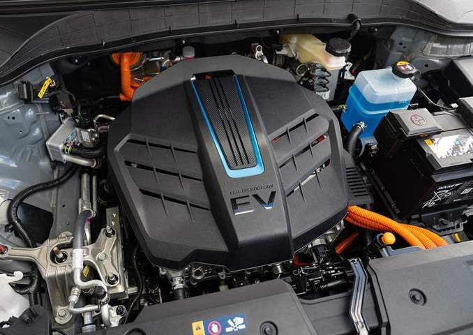 أما كونا الكهربائية فتستخدم محركًا كهربائيًا بقوة 201 حصان، ويمكن للسيارة باستخدام معدل شحن سريع الشحن من 10 إلى 80 في المائة في نحو 47 دقيقة.