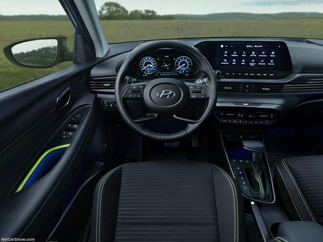 ويمكن لركاب i20 الاستمتاع بإضاءة داخلية لطيفة بفضل تقنية الإضاءة المحيطية الزرقاء الجديدة الـLED. ويمكن للعملاء الاختيار من بين ثلاثة ألوان داخلية، هي الأسود، أو الأسود والرمادي، أو الأسود مع الأزرق والأصفر، وكلها ألوان جذابة توفر مظهرًا أنيقًا للمقصورة.