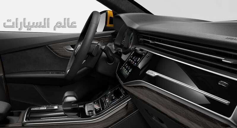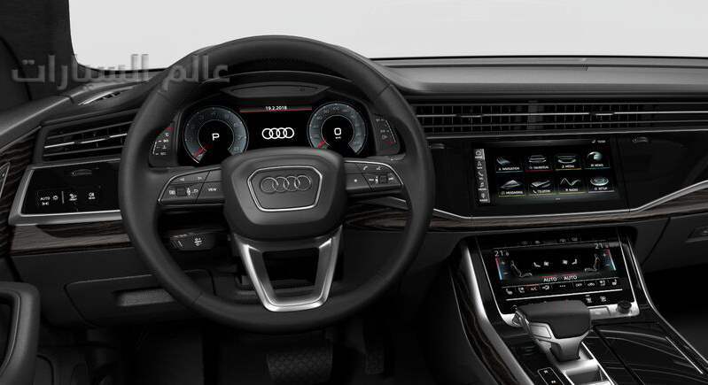 وفي المقصورة الهادئة المعزولة عن ضوضاء العالم الخارجي ذات الإضاءة المحيطية, تطعم "Q8" بالخشب بالتابلوه والأبواب فضلا عن الجلد فائق الجودة كما يزدان التابلوه والكونسول الوسطي بأسطح الأسود البيانو اللامعة مع الألومنيوم ضمن خطوط تصميم تبرز بها بصمات "أودي" الجديدة. ويزداد الشعور بالإتساع والراحة مع السقف الزجاجي البانورامي مع الحفاظ على الخصوصية بالزجاج المعتم الخلفي.