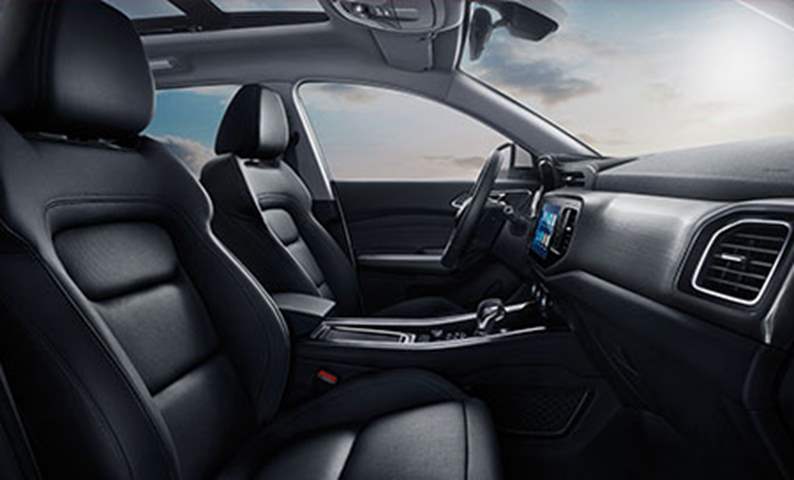 تحتوي المقصورة على شاشة 7 بوصات للعدادات، وخاصية تعديل عجلة القيادة بوضعين، وعجلة قيادة متعددة المهام مكسوة بالجلد، وتكييف هواء بتحكم ثنائي في درجات الحرارة، ومزيل شبورة، وسخانات بالزجاج الخلفي، وخاصية فتح الزجاج بلمسة واحدة، وفرش داخلي داكن اللون، وفرش جلد للمقاعد، ومواد لينة بالكابينة. وتتمتع مقاعد الصف الأول بخاصية تعديل كرسي السائق بأربعة أوضاع، وتعديل كرس الراكب الأمامي، ومخارج USB، ودرج تخزين بفتح ناعم، ومساحة تخزين بالأبواب، ومسند يد أمامي مع صندوق تخزين وتبريد وحامل أكواب. أما مقاعد الصف الثاني فتتمتع بفتحات تكييف، وإضاءة LED، ومخرج USB، وخاصية تعديل المقاعد بأربع اتجاهات، ومقاعد قابلة للطي بشكل مسطح 60:40، ومسند يد بحامل أكواب، وجيوب خرائط، ومساحة تخزين بالأبواب. أما الصف الثالث فتأتي المقاعد قابلة للطي بشكل مسطح، مع مساحة تخزين وحامل أكواب. |