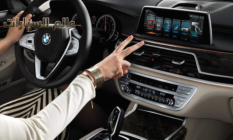 تتميز الفئة السابعة الجديدة بخاصية التحكم في بعض وظاءف السيارة بحركة اشارة بسيطة من اليدين .BMW Gesture Control وتأتي السيارة بالإصدار السادس من نظام iDrive لتشغيل أنظمة السيارة والمزود بشاشة تعمل باللمس 10.25 بوصة في منتصف لوحة القيادة، وقرص صلب لتخزين الموسيقى بمساحة 20 جيجابايت، وكذلك نظام HUD لعرض السرعة وبيانات الملاحة على الزجاج الأمامي على مستوى الرأس، كما تأتي بنظام ترفيهي للمقاعد الخلفية مكون من شاشتين 10,25 بوصة فائقتَي الوضوح مع مشغل أقراص Blu-ray ومدخل HDMI بالإضافة إلى نظام BMW Touch Command الذي يعطي الراكب قدرة على التحكم في العديد من وظائف السيارة والمقاعد من خلال جهاز لوحي يعمل باللمس.