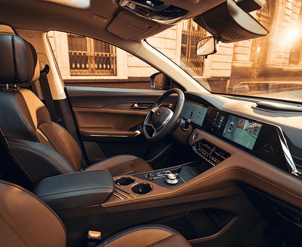 عجلة القيادة متعددة الاستخدامات ومكسوة بالجلد، شاشة عدادات HD مقاس 12.3 بوصة، شاشة وسطية مقاس 12.3 بوصة، بلوتوث، مخرج كهرباء 12 فولت، شحن لاسلكي للهواتف الذكية في الفئات الأعلى، نظام صوت مكون من 6 سماعات، فرش المقاعد جلد، ضبط مقعد السائق كهربائياً في 6 اتجاهات، ضبط مقعد الراكب الأمامي في 4 اتجاهات يدوياً (في الفئة الأولى) و(كهربائياً في الفئات الأعلى)، تكييف أوتوماتيك ومنظف هواء، فتحات تكييف خلفية، مرآة بخاصية تعتيم أوتوماتيك في الفئات الأعلى.