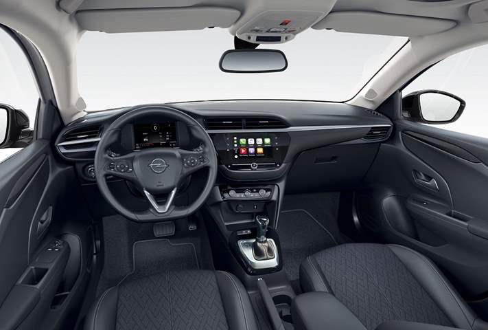 كما تحتوى أوبل كورسا على كاميرا خلفية بانوراما، وحساسات للركن امامية وخلفية، وزجاج خلفي وجانبي معتم، وسبويلر خلفي، بالاضافة الى عجلة قيادة متعددة الاستخدامات وقابلة للضبط، مكسوة بالجلد، ومسند امامي للذراع، وباور ستيرنج الكتروني حساس للسرعة، ومثبت ومحدد السرعة، وراديو AM / FM ، و6 سماعات داخلية موزعة على كافة انحاء السيارة وشاشة ذكية 7 بوصة تعمل باللمس، وتدعم انظمة Apple Car Play + Android Auto بالاضافة الى امكانية توصيل المحمول عبر البلوتوث، ووجود مدخل USB وشاشة عدادات ذكية 7 بوصة، وشاشة لتحليل بيانات الرحلات، وحامل اكواب، واضاءة امامية في السقف، وفرش السيارة بالكامل قماش مطعم بالجلد، والمقاعد الخلفية قابلة للطي بنسبة 40/60.