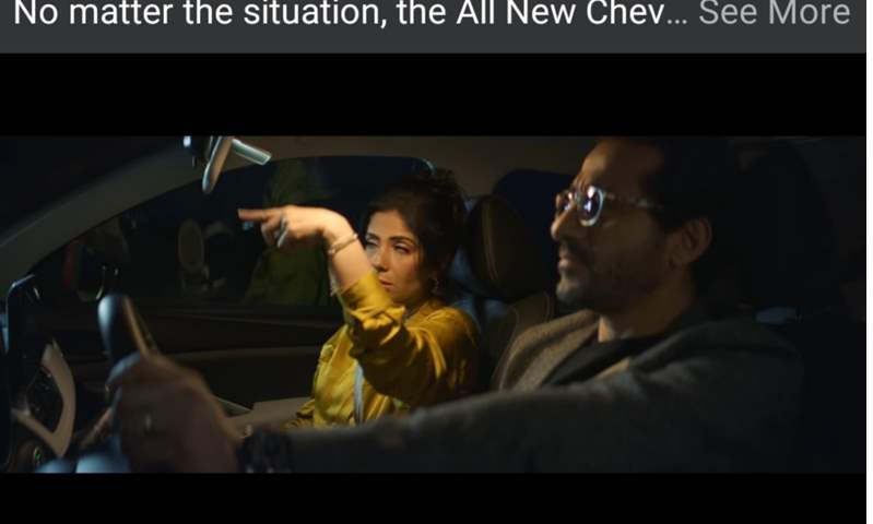 وبدأ إعلان سيارة كابتيفا في صورة شِجار بين الثنائي، أحمد حلمي وزوجته الفنانة منى زكي، حتى تطلب الثانية منه وقف السيارة والنزول منها قائلة: "أنا محتاجة أبعد شوية"، لتنتقل إلى المقعد الخلفي للسيارة التي كان من فئة الـ7 راكب، وذلك إشارة لاستعراض الشركة مساحة سيارة كابتيفا الجديدة من خلال الإعلان تحت شعار "المساحة-اللي-انت-محتاجها".