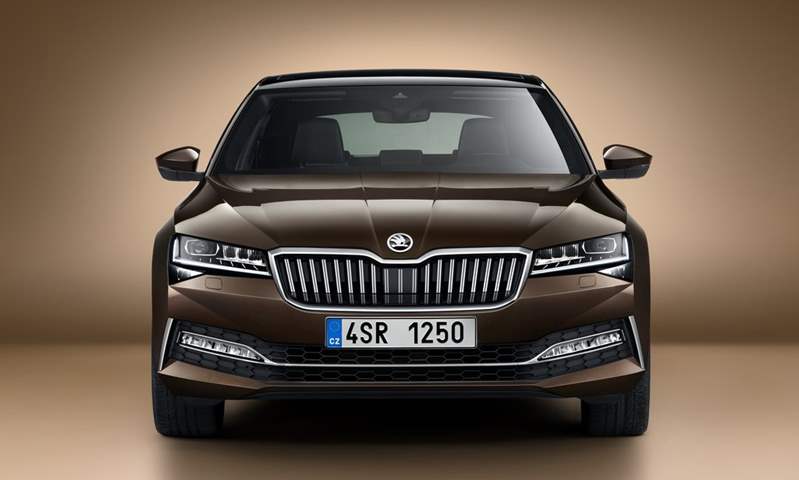 تتمتع سكودا سوبيرب بملامح مميزة تجمع بين القوة والأناقة في نفس الوقت. ويظهر التصميم الفريد للمصابيح الأمامية على شكل مستطيل يتألق ضلعيه بتقنية LED على شكل حرف L، وعند طرف المستطيل من الأسفل يمتد شكل آخر مثلث، جعل لتصميم مصابيح السيارة بصمة مميزة. وفي الأسفل تمتد مصابيح الضباب على شكل مصفوفة أنيقة من الكريستالات تراصت على كل جانب، ويحيط بها إطار فضي يمتد في خط رقيق عبر الشبكة السفلية ليصل بين الجانبين.