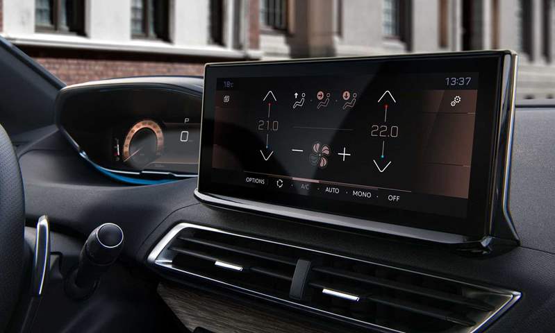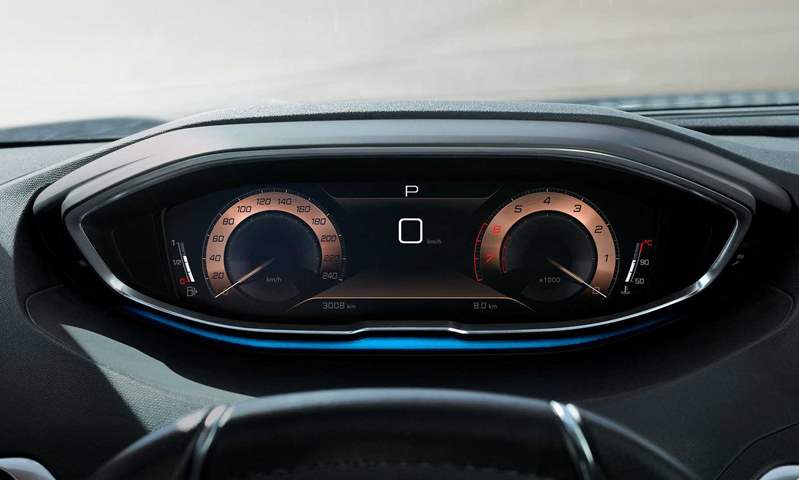 في الخلف لا تظهر تغييرات واضحة كما في المقدمة، بينما داخل السيارة تم تطوير مقصورتها الحديثة i-Cockpit في نواح عدة، فمثلاً حصلت على شاشة لمس جديدة مقاس 10 بوصة بدلاً من الشاشة 8 بوصة الحالية، وتتألق العدادات على شاشة رقمية مقاس 12.3 بوصة يتم ضبط إعداداتها، ليبدو كل شيء متكاملاً في لوحة القيادة، خاصة مع عجلة القيادة بتصميمها الصغير الأنيق.