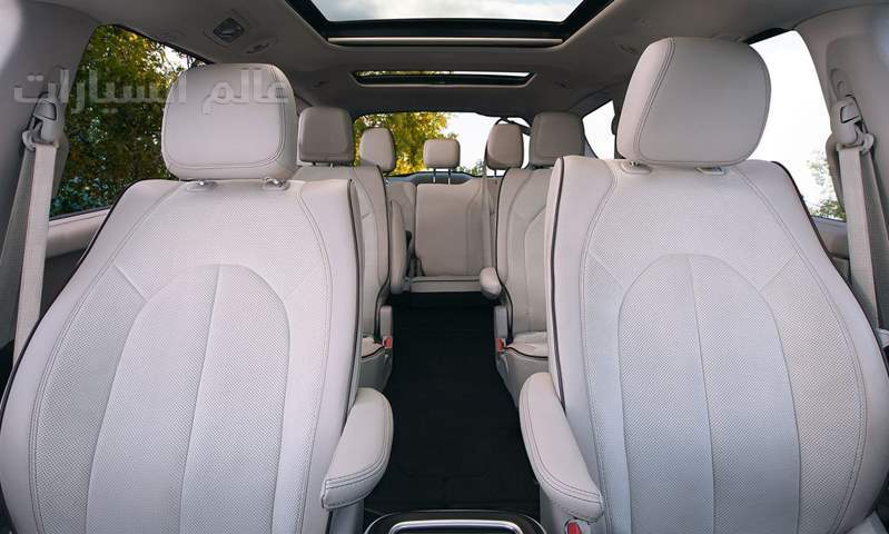 وتهتم "Pacifica" الجديدة براحة ورفاهية الركاب على الثلاثة صفوف, موفرة خاصية إلغاء الضوضاء النشطة من أجل توفير جو هاديء بالكابينة, إمكانية فتح الأبواب المنزلقة الجانبية والباب الخلفي بحركة القدم دون استخدام اليدين, سقف بانورامي ثلاثي الفتحات منها فتحة ثابتة للصف الثالث, مكيف هواء أتوماتيكي ثلاثي المنطقة, تدفئة لمقاعد الصف الثاني والثالث, إمكانية فتح جميع النوافذ الكهربائية بلمسة واحدة, أضواء محيطية أمامية وخلفية, إمكانية الطي الكهربائي لصف المقاعد الثالث, منافذ USB لشحن الهاتف المحمول بالصفوف الثلاثة, ونظام صوتي ألباين متصل بـ13 سماعة بقوة 506 واط.