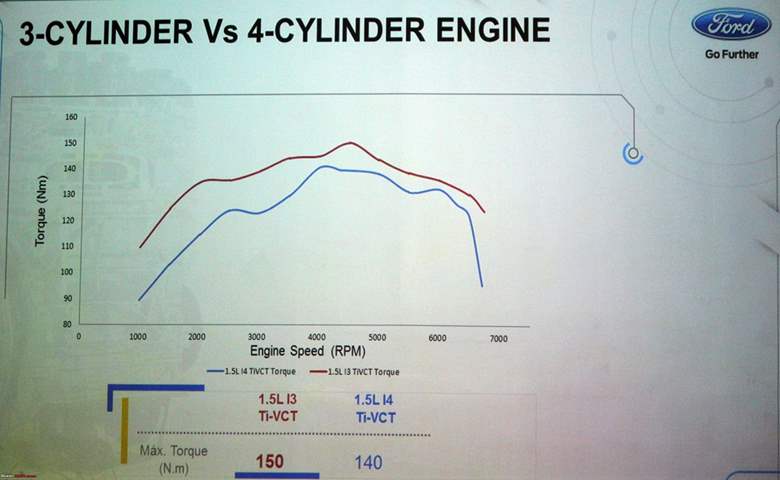 - يوفر محرك Ti-VCT الجديد كليًا سعة 1.5 لترًا انخفاضًا بنسبة 7? في انبعاثات ثاني أكسيد الكربون، كما أدى تقليص حجم المحرك من أربع إلى ثلاث أسطوانات إلى انخفاض إجمالي في الحجم بنسبة 10? إلى جانب انخفاض الوزن وتقليل الاحتكاك.