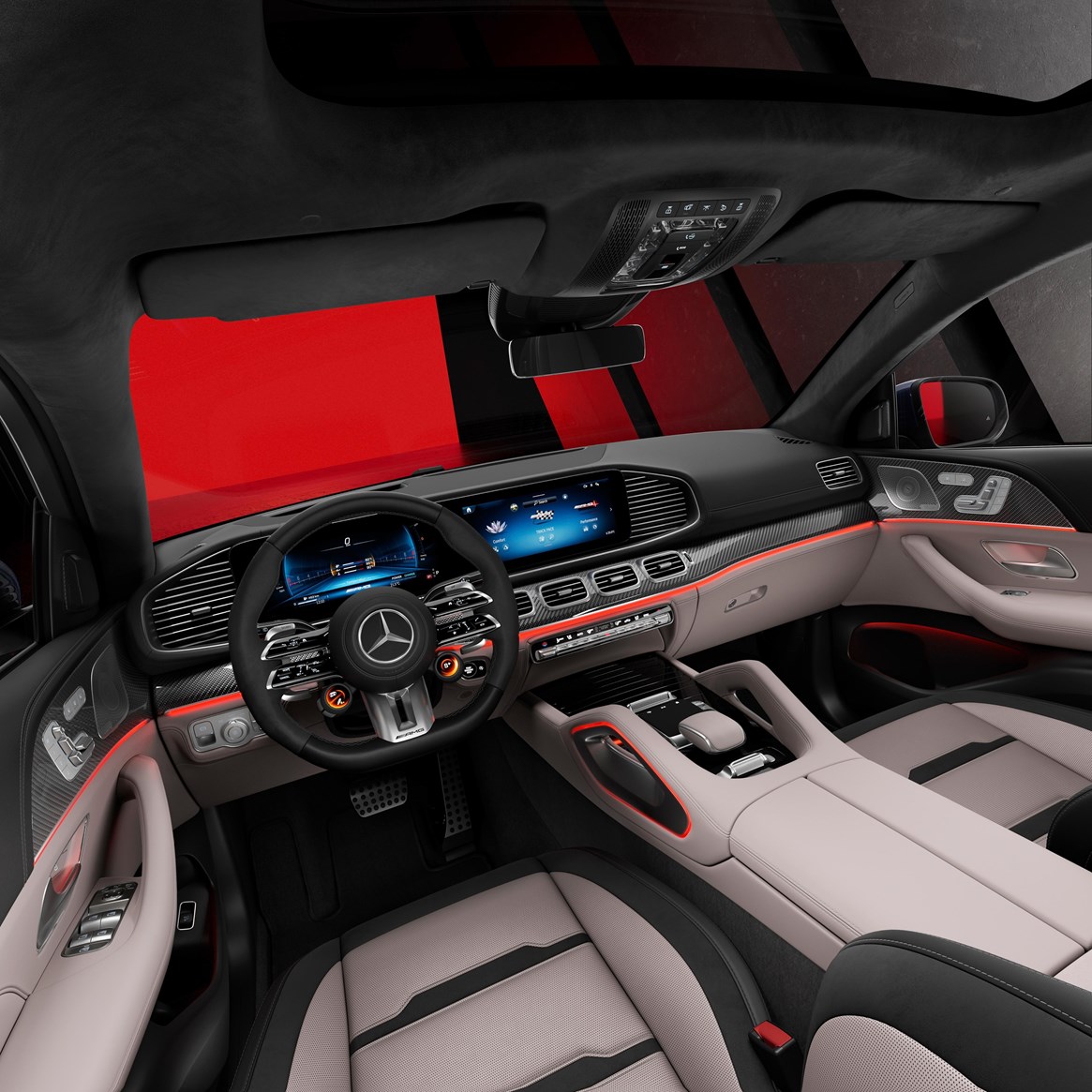 يضفي التصميم الداخلي جوًا من الابهار والفخامة للسيارة GLE 53، والتي تم تجهيزها بمقاعد أمامية مصممة خصيصًا لتوفير راحة استثنائية، بالإضافة لباقة AIR BALANCE لتحسين جودة الهواء داخل المقصورة، وخاصية عرض البيانات ومعلومات القيادة الأساسية على الزجاج الأمامي. ويتيح نظام MBUX المعلوماتي والترفيهي إمكانية التحكّم في الوظائف المختلفة بالإيماءات والصوت بكل سهولة، كما تتضمن اللمسات التصميمية الفاخرة أيضًا حاملي أكواب بتحكّم حراري، وإسقاط ضوئي لشعار AMG عند فتح الأبواب الأمامية، وكسوة سقف MANUFAKTUR من قماش مايكروكت الأسود، وإضاءة محيطية، وتطعيماتAMG الداخلية والمصنوعة من ألياف الكربون. كما تتضمن التجهيزات أبوابًا بخاصية الغلق الكهربائي، وباقة ENERGIZING، وأزرار تحكم AMG على عجلة القيادة، ونظام العادم AMG Performance الاختياري، وعجلة قيادة AMG Performance المصنوعة من ألياف الكربون والمكسوة بقماش مايكروكت.