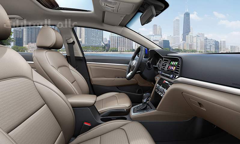 وقد أصبحت "Elantra" موديل 2019 بعجلات إحتياطية بحجم كامل لفئاتها الثلاثة الأولى المزودة بعجلات صلبة بدلاً من عجلات بحجم مختلف. كما زودت بتطعيمات داخلية بلون أسود لامع قياسياً بدلاً من فئتين فقط. وقياسياً أضيفت كاميرا رؤية خلفية وإمكانية ربط الهاتف الذكي بنظام "آندرويد" أو "أبل" بالشاشة. وإختيارياً أضيف نظام مراقبة ضغط الإطارات لآخر فئتين, شحن لاسلكي للهاتف الذكي لآخر ثلاثة فئات. كما أضيف إختيارياً كل من الوسائد الهوائية الجانبية والستائر الهوائية والوسادة الهوائية لركبة القائد, برنامج الثبات الإلكتروني, نظام المساعدة على الطرق الصاعدة, نظام رصد النقطة العمياء, المصابيح الليد الكاملة الرئيسية, المقاعد المكسوة بالجلد البني, التحكم الكهربائي بمقعد القائد مع ذاكرة, المقاعد الأمامية القابلة للتدفئة والتهوية للفئة الأخيرة فقط.