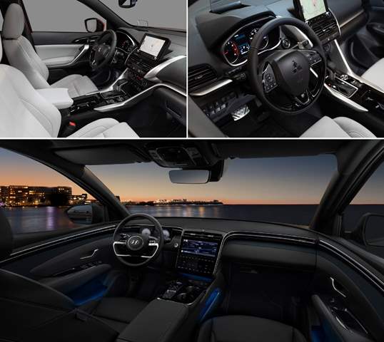 تتمتع كل سيارة بملامح تتميز بها عن غيرها، ورغم اختلاف تصميم كل من إكليبس كروس وتوسان، إلا أنهما قد اتفقتا على الإطلالة الشرسة والخطوط الحادة الظاهرة بشكل خاص في واجهة كل منهما.