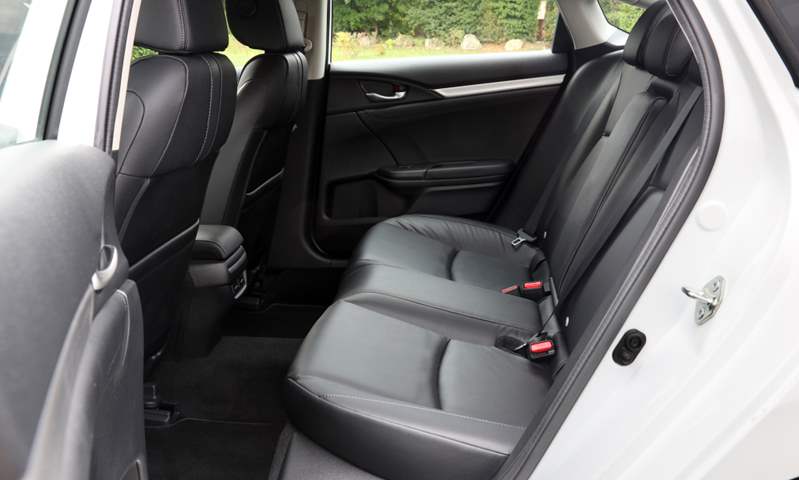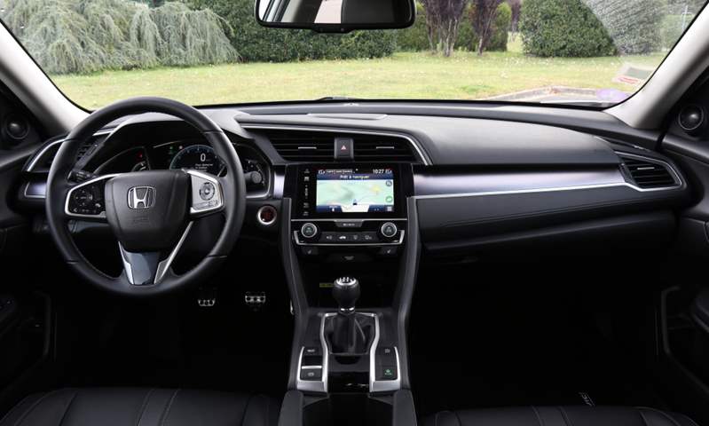 أما بالنسبة للمقصورة، فالواضح أن تصميم سيفيك الداخلي أفضل من الأجيال السابقة حيث صارت ملامح التصميم أرقى مع أستخدام مواد أفضل. ولا تختلف سيفيك السيدان عن الموديل الهاتشباك من حيث تصميم الجزء الأمامي من المقصورة، كما أن لوحة العدادات صارت بشكل تقليدي أكثر من الجيل السابق. وساعد تغيير وضع خزان الوقود فى تحسين وضع القيادة للسائق كما تقول الشركة حيث أمكن خفض أرتفاع المقعد عما سبق، كما أن وضع الجلوس داخل المقصورة يوفر الكثير من المساحات لطوال القامة. أما حقيبة الأمتعة الخلفية، فتبلغ مساحتها 519 لتراً وهي مساحة كبيرة مقارنة بالمنافسين وربما تعد تلك ميزة بالنسبة للكثيرين.