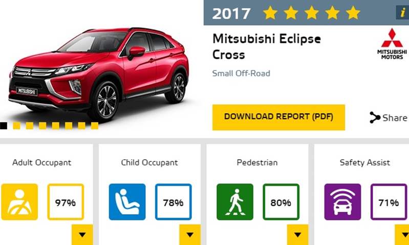 كلا الطرازين خضع لاختبارات التصادم الأوروبية مع تسجيل الخمسة نجوم كاملة، وسجل طراز أتيكا نسب 93% في حماية البالغين، 84% في حماية الأطفال مقابل 97 و78% لإكليبس كروس، بينما سجل الطراز الأول نسبة 71% لحماية المشاة والثاني 80%.